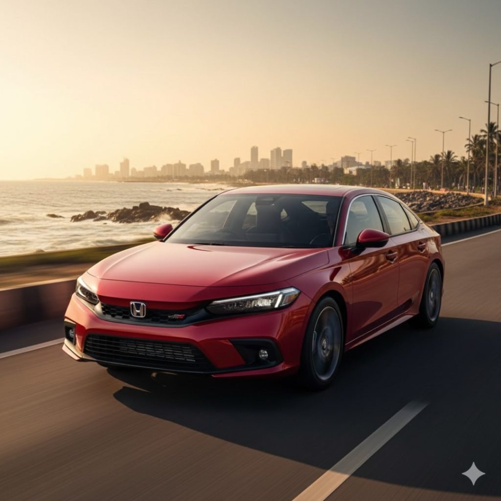 The Honda Civic e:HEV Hybrid is priced around ₹34 Lakh to ₹36 Lakh (On-Road) depending on your state taxes.