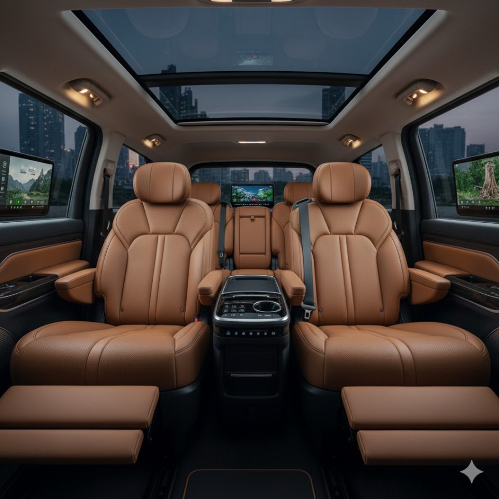 This is where your ₹64 Lakh goes. The cabin of the Limousine Plus variant is finished in a “Tuscan and Umber” dual-tone theme that feels incredibly high-end.
